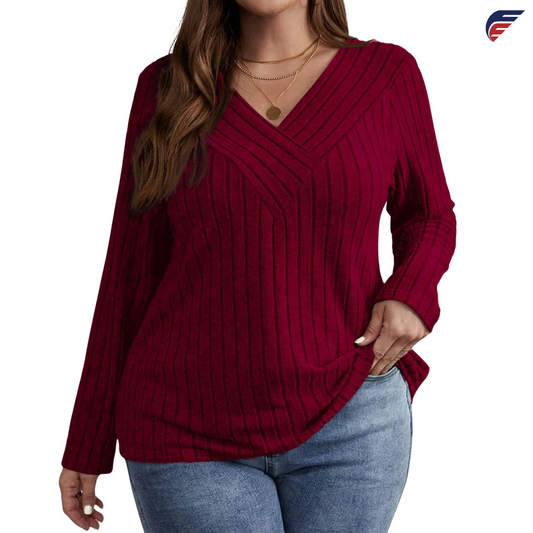 Gray and Burgundy Long Sleeve V - Neck Knitted Shirt